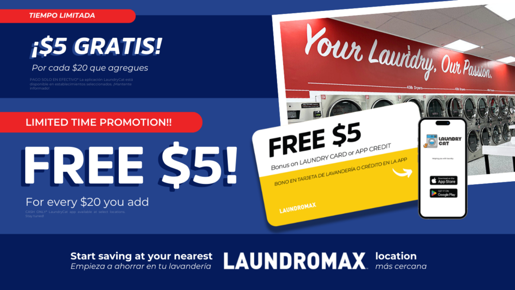 Laundromax Bonus Money Limited Time! FREE $5 Every $20 you add! Perfect time to switch up your laundry routine ✨ Use Now & Later – This promotion won’t last long!…